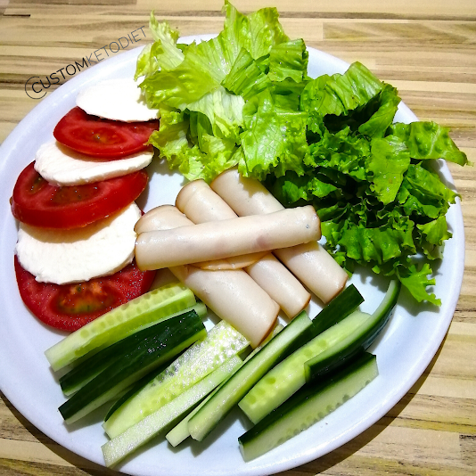 1. Layer the tomatoes and mozzarella. Place one tomato on a plate top with a mozzarella slice and repeat. Add the lettuce and season with salt and olive oil.